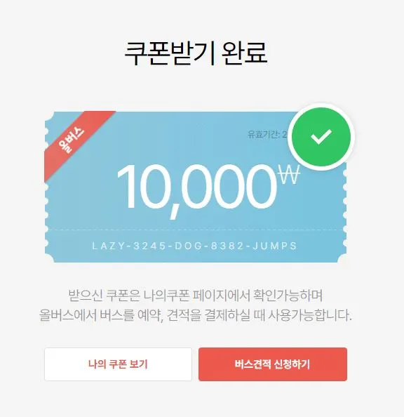 해당 쿠폰은 올버스에서 버스를 예약,견적 결제 시 사용가능합니다.