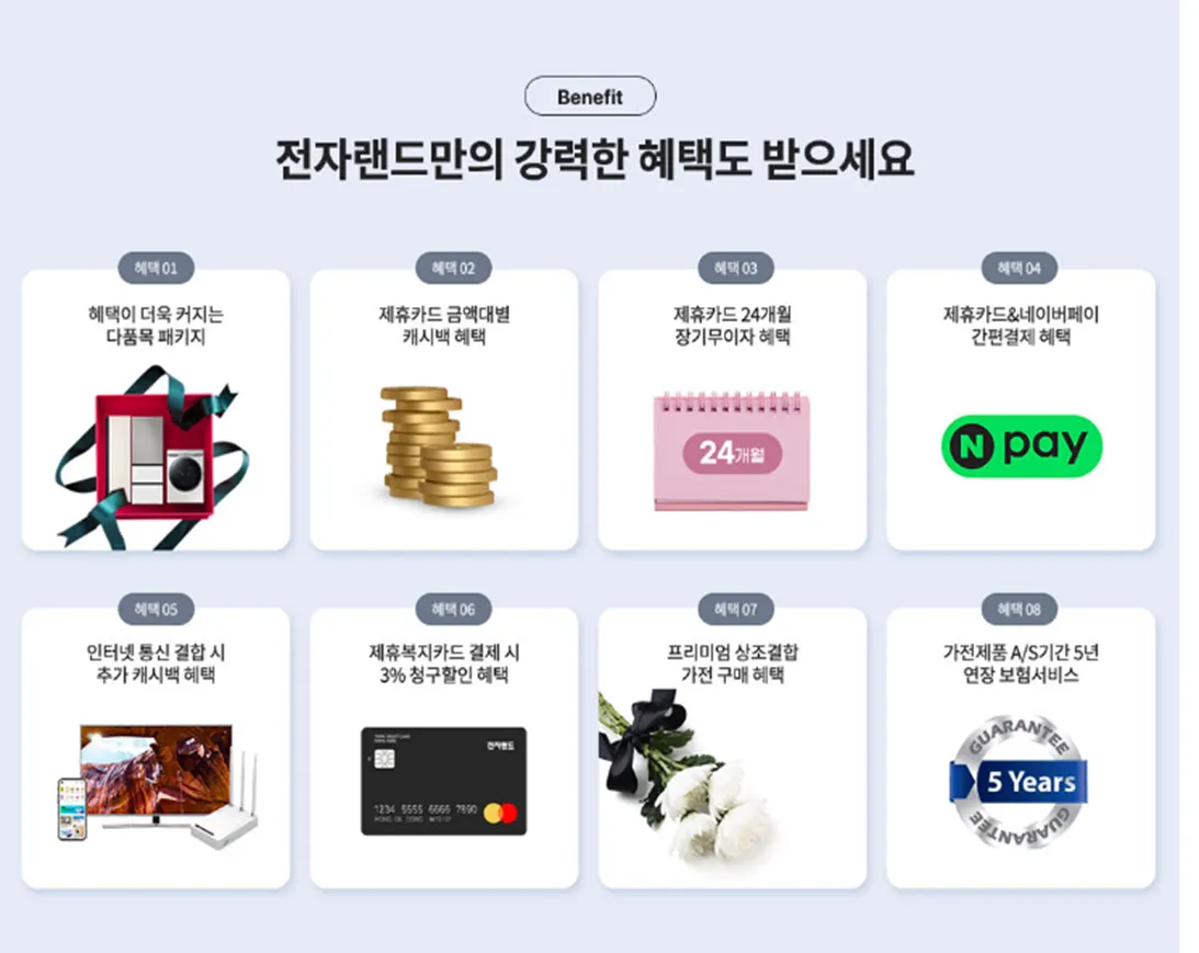 무상 A/S 보증 최대 5년 혜택(일부품목 제외)