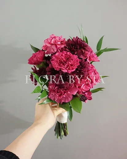 NN-1 부케는 자주색카네이션과 유스커스잎을 믹스하여 제작한 부케입니다.