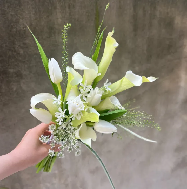 D-17 카라 별튤립믹스 부케는 카라를 메인으로 아기자기한 별튤립을 믹스해 제작한 부케입니다.