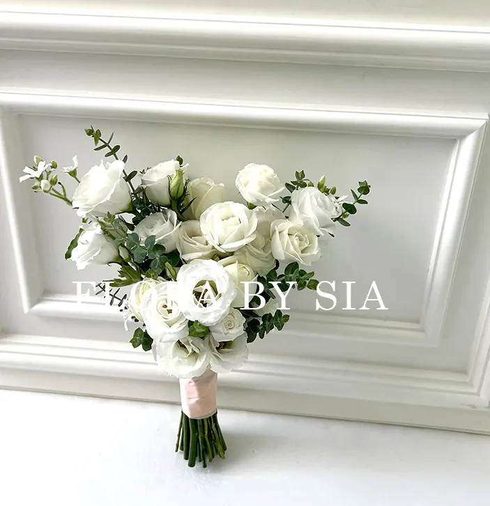 NS-168 부케는 화이트장미인 마르샤와 화이트리시안, 유칼리잎을 믹스한 부케입니다.