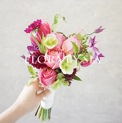 W-23 부케는 로맨틱앤틱로즈와 클레마티스 자주튤립 등 고급수입꽃들을 믹스한 부케입니다