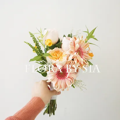 밝은 피치톤이 특징인 부케로 퍼스널컬러 웜톤에 어울리는 부케를 찾는 신부님들께 추천합니다