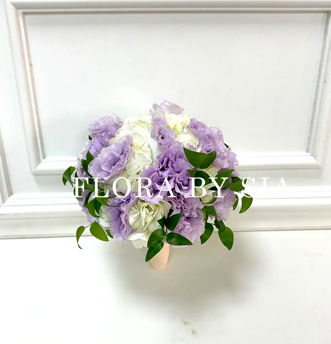 NN-435 부케는 연보라리시안, 수국, 스마일락스를 사용하여 제작한 부케입니다.