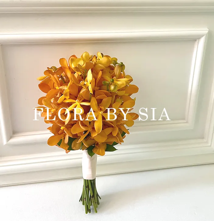 유니크한 주황빛이 매력적이며, 은은한 미색 드레스를 선택하신 신부님에게 추천합니다