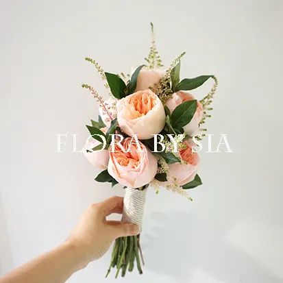 W-322 부케는 수입장미인 줄리엣로즈와 연핑크아스틸베 및 그린소를 믹스한 부케입니다.