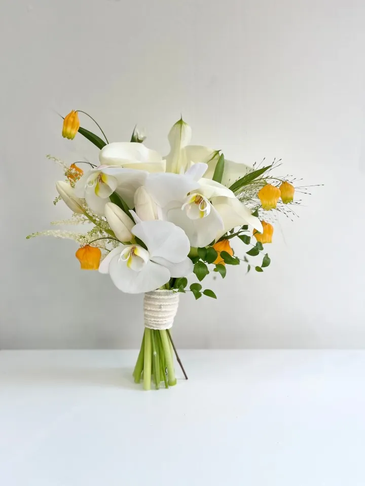 E-66 호접&샌더소니아 부케는 호접과 샌더소니아,그린소재를 믹스하여 제작한 부케입니다.