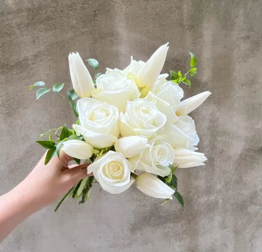 D-15 라펄&튤립믹스 부케는 화이트튤립과 라펄을 믹스하여 제작한 부케입니다.