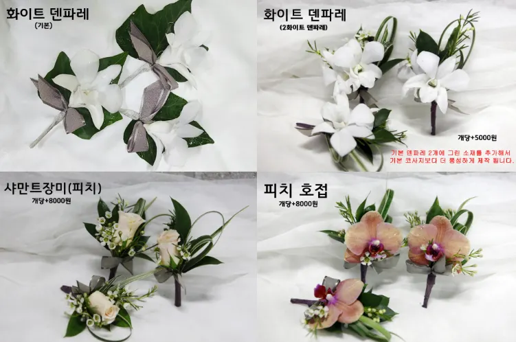 혼주/사회자/주례자용 코사지 6개 : 기본 코사지는 화이트로 제작됩니다.