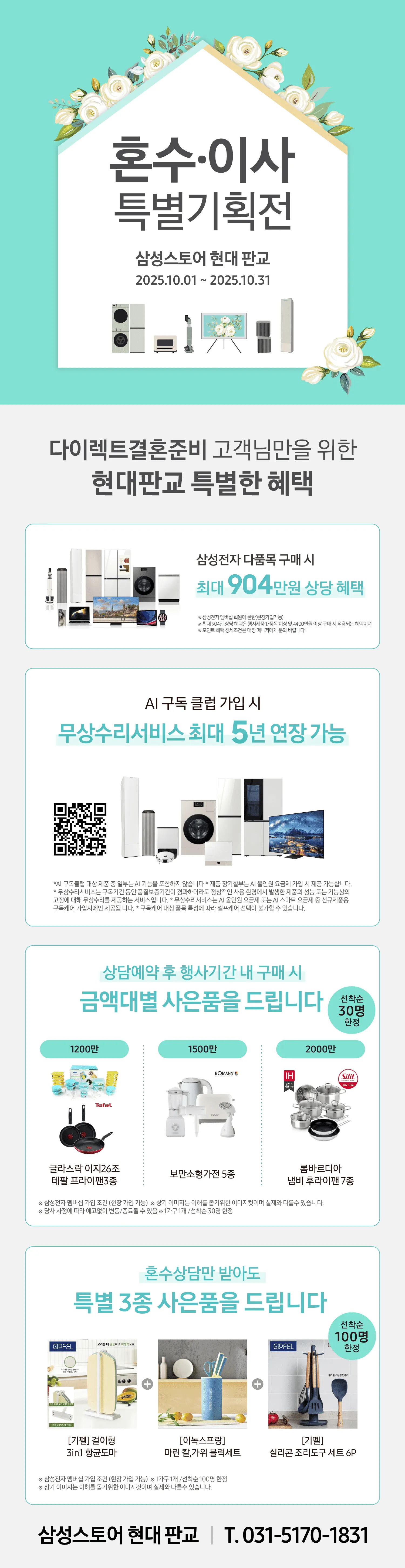 삼성스토어 현대판교점은 혼수 지정 매장 입니다