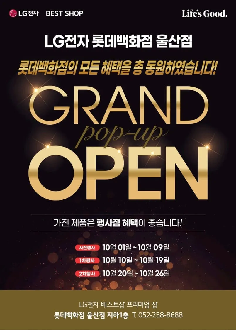 롯데 울산점 LG전자 단독 팝업오픈 모바일 상품권 증정
