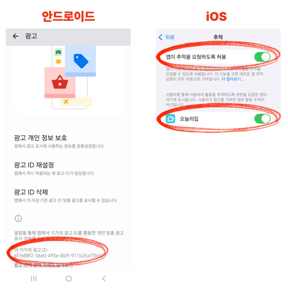 부여된 광고 ID가 없다면 '새 광고 ID받기' 실행
