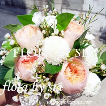 S-133 부케는 수입장미인 줄리엣로즈와 화이트퐁퐁 및 잔꽃을 믹스한 부케입니다.