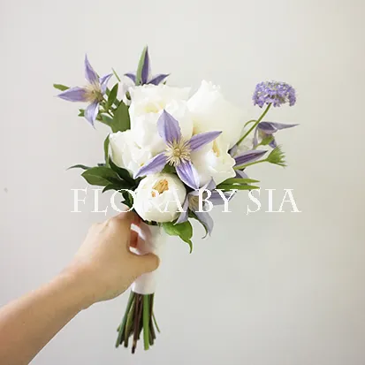 연보라빛의 잔꽃이 포인트이며, 깔끔하고 세련된 느낌의 부케를 원하는 신부님께 추천합니다