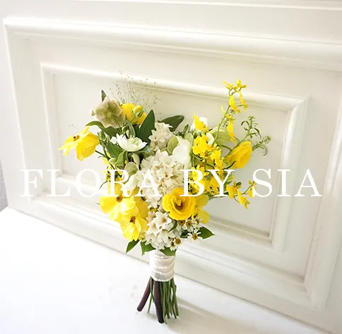 노란 잔꽃들이 포인트이며, 1~3월만 제작 가능해 초봄 예식을 앞둔 신부님들께 추천합니다