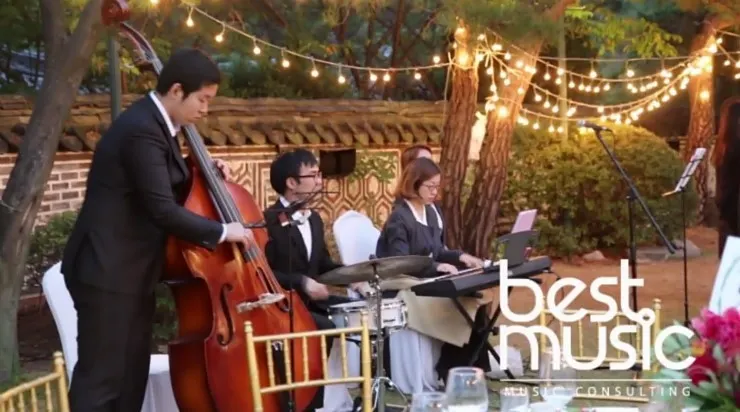 야외웨딩의 밝은 분위기 : 재즈 3중주 (피아노+콘트라베이스+색소폰or드럼)