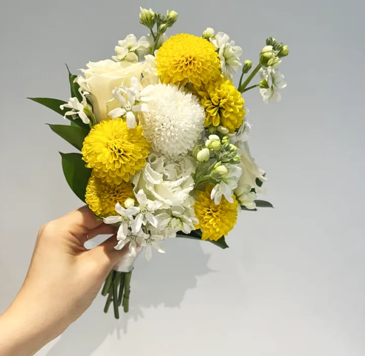 B-07 옐로우퐁퐁 로즈믹스부케는 옐로우퐁퐁과 화이트로즈를 믹스하여 제작한 부케입니다.
