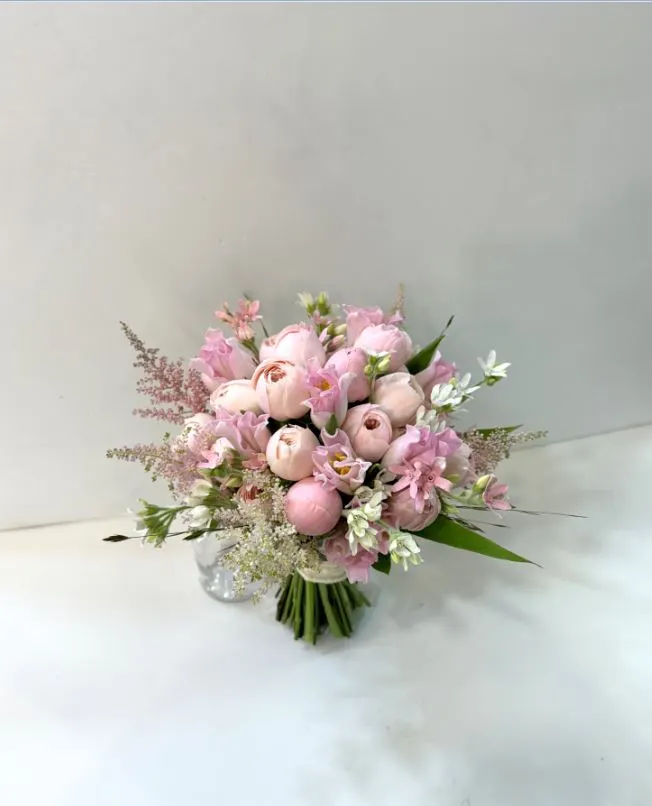 아스틸베가 여리여리함을 더해주고 핑크톤이 러블리한 느낌을 강조해주는 부케로 귀여운 이미지를 가지신 신부님께 추천합니다