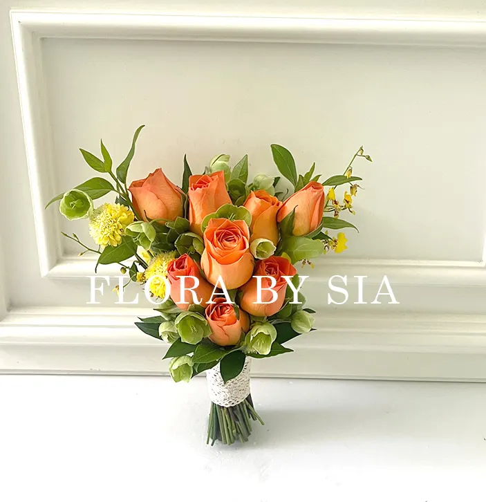 NS-343 부케는 화사하고 선명한 오렌지톤 수입장미에 그린소재를 제작한 부케입니다.